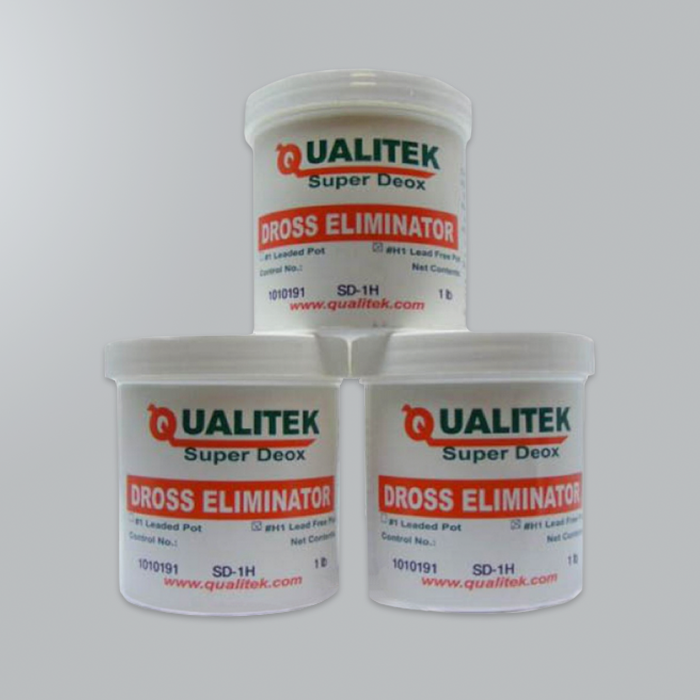Para los crisoles sin plomo , Super Deox #1H ofrece una solución estable y de baja formación de espuma que puede soportar temperaturas más altas sin descomponerse. Sin punto de inflamación, es ideal para las exigentes condiciones de la soldadura sin plomo . Se ha demostrado que Super Deox #1H recupera más del 80 % de la escoria y la convierte en soldadura utilizable de alta calidad, lo que lo convierte en una solución rentable para mantener el rendimiento del crisol de soldadura y extender la vida útil de la soldadura. Elija Qualitek Super Deox para una eliminación eficaz de la escoria y la recuperación de la soldadura tanto en procesos de soldadura con plomo como sin plomo .