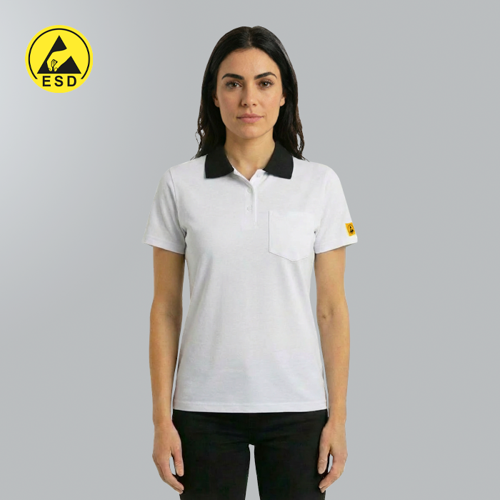 ESD POLO SHIRT WHITE - SHORT SLEEVE   These high-quality ESD polo shirts are designed specifically for use in electrostatic discharge (ESD) protected areas. Manufactured from a static dissipative m