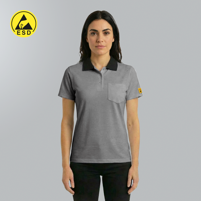 ESD POLO SHIRT GREY - SHORT SLEEVE   These high-quality ESD polo shirts are designed specifically for use in electrostatic discharge (ESD) protected areas. Manufactured from a static dissipative ma