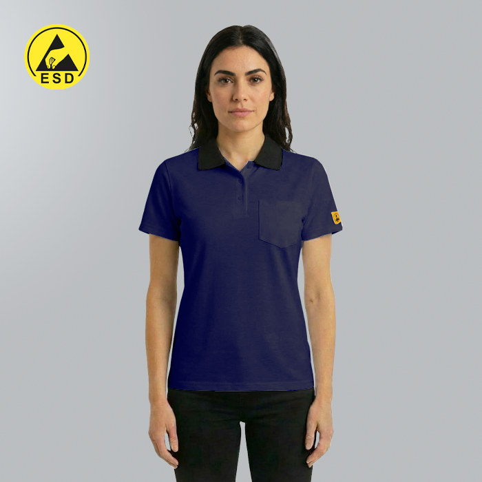 ESD POLO SHIRT NAVY BLUE - SHORT SLEEVE   These high-quality ESD polo shirts are designed specifically for use in electrostatic discharge (ESD) protected areas. Manufactured from a static dissipati