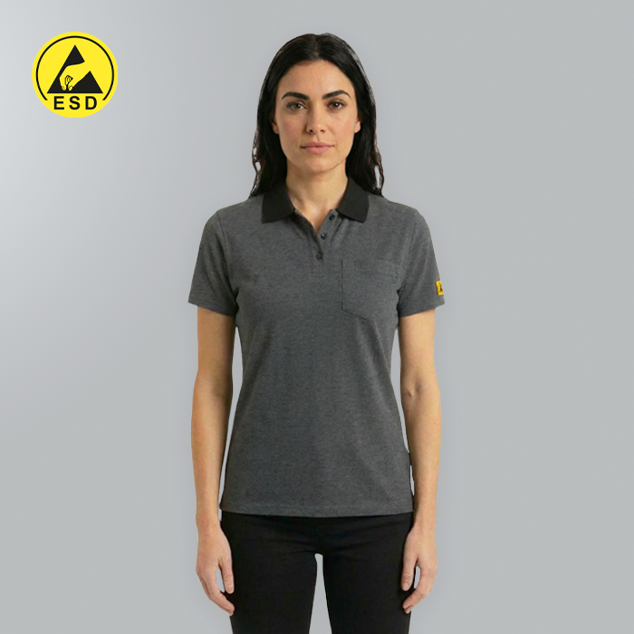 ESD POLO SHIRT DARK GREY - SHORT SLEEVE   These high-quality ESD polo shirts are designed specifically for use in electrostatic discharge (ESD) protected areas. Manufactured from a static dissipati