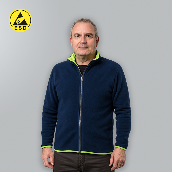 Notre Cardigan polaire ESD unisexe haut de gamme BLEU MARINE combine chaleur extrême avec propriétés de dissipation statique , ce qui en fait le choix parfait pour une utilisation dans Zones protégées contre les décharges électrostatiques (EPA) .