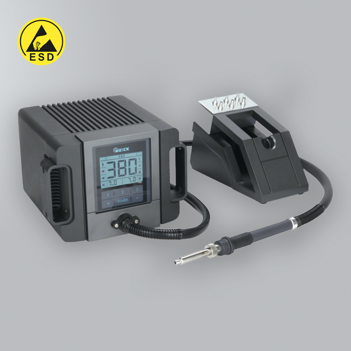 La station est dotée d'un tout nouveau design ergonomique et d'un écran LCD brillant. Le QUICK TR1100 est une station de reprise intelligente sans plomb. Utilisant une alimentation robuste de 180 watts, ce système est idéal pour les applications de reprise de soudure à haute température et une qualité constante. La station est dotée d'un tout nouveau design ergonomique, d'un écran LCD brillant et d'une capacité de communication avec un PC.